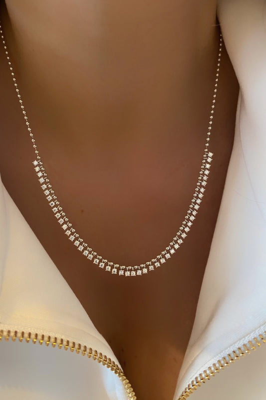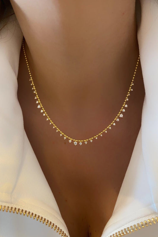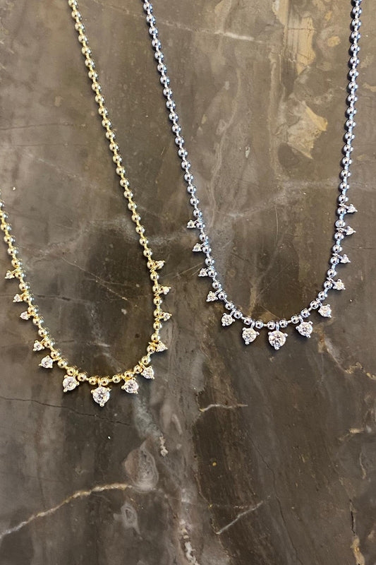 Mini Üç Tırnak Çok Taşlı Sallantılı Top Zincir Gümüş Kolye