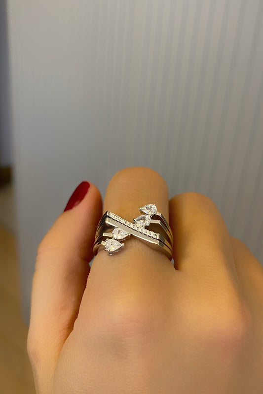 Dört Damla Ve Çapraz Detay Gümüş Yüzük