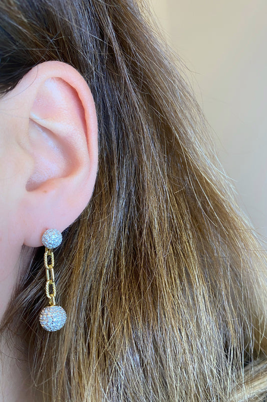Taşlı İki Top Ve Geo Sallantılı Gümüş Küpe