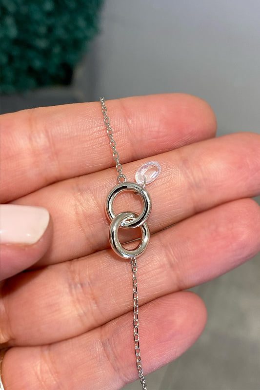 Oval Kristal Sallantılı İki Çember Gümüş Bileklik