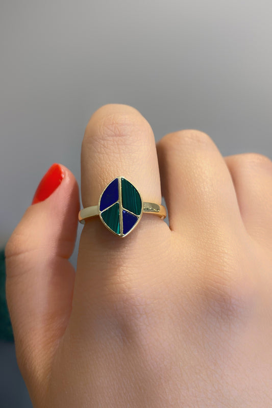 Malahit Ve Lapis Detay Yaprak Gümüş Yüzük