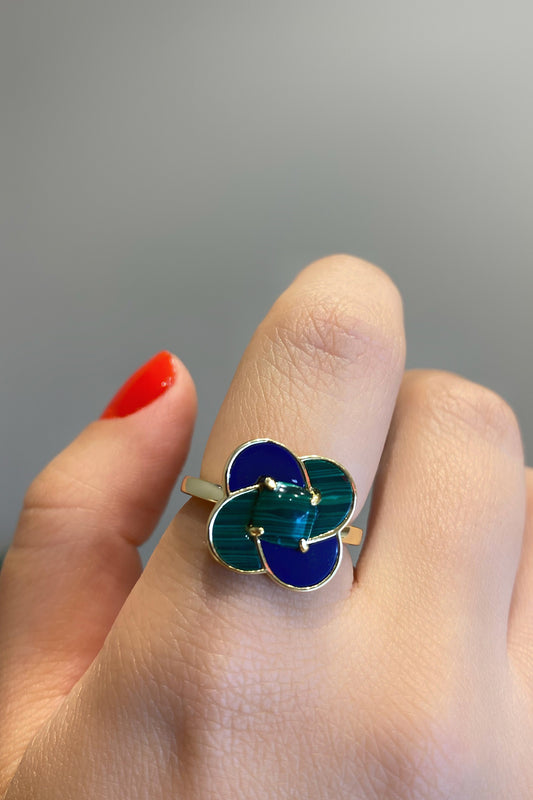 Malahit Ve Lapis Çiçek Gümüş Yüzük