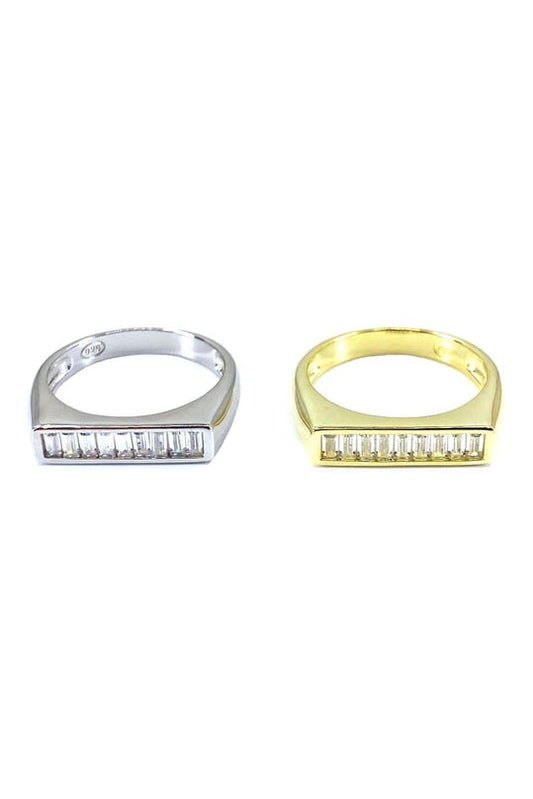 Sıralı Dikey Baget İnce Gümüş Yüzük