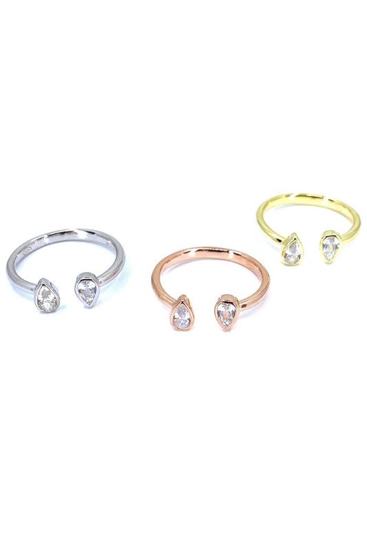 Minimal Ters İki Damla Açık Gümüş Yüzük