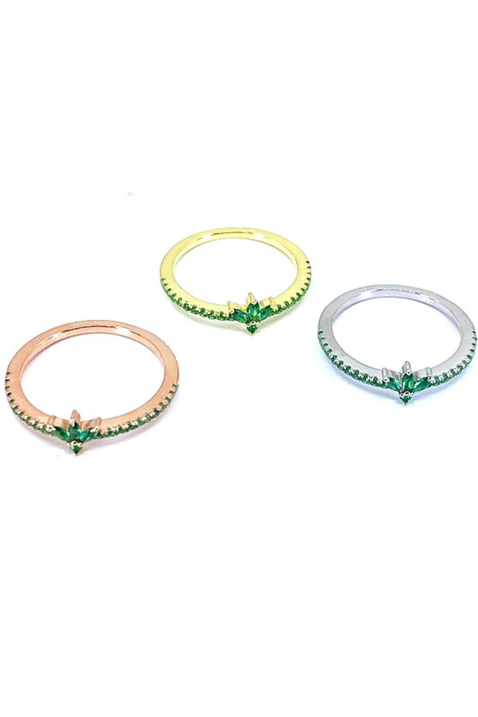 Minimal Yeşil Yarım Tur Lotus Gümüş Yüzük