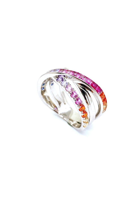 Lila Ruby Baget Çapraz Gümüş Yüzük