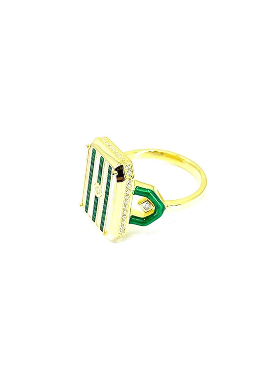 Malahit Ve Sedef Çubuk Kilit Gümüş Yüzük