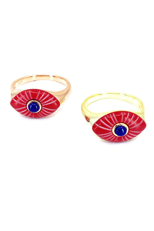 Mercan Ve Lapis Göz Gümüş Yüzük