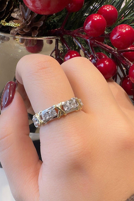Dikey Ve Yatay İki Sıra Baget Gümüş Yüzük