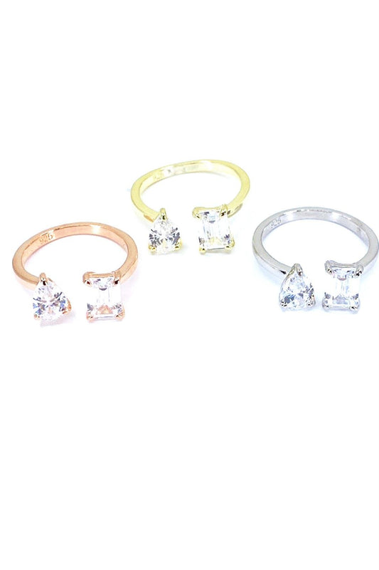 Beyaz Dağınık Taşlı Kalp Gümüş Yüzük