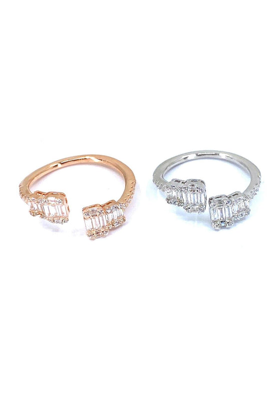 Mini İki Baget Yarım Tur Açık Gümüş Yüzük