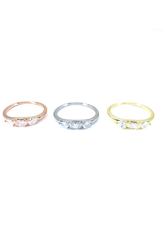 Beyaz Tek Damla Ve Baget Gümüş Yüzük