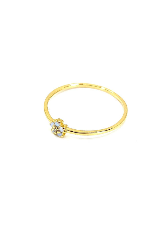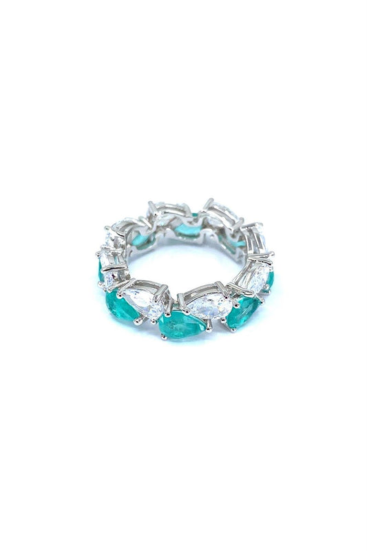 Paraiba Ve Beyaz Damla İki Sıra Gümüş Yüzük