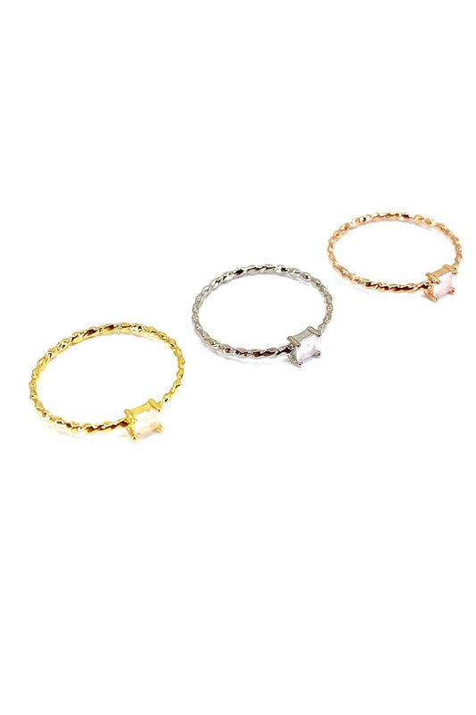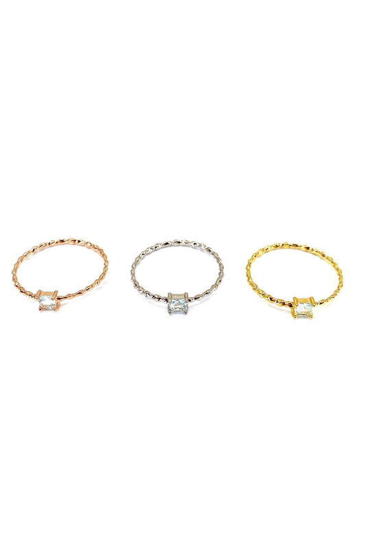 Minimal Kemik Detay Pinky Kare Gümüş Yüzük