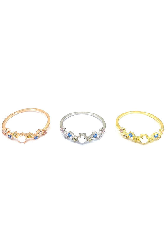 Renkli Sekiz Taş Bir Beyaz Opal Gümüş Yüzük