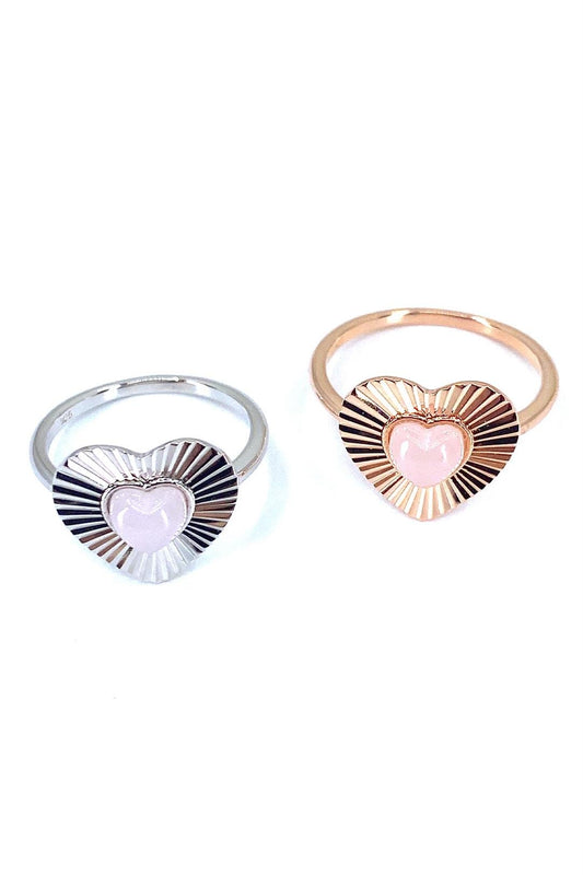 Soft Pembe Kalp Çizgili Gümüş Yüzük