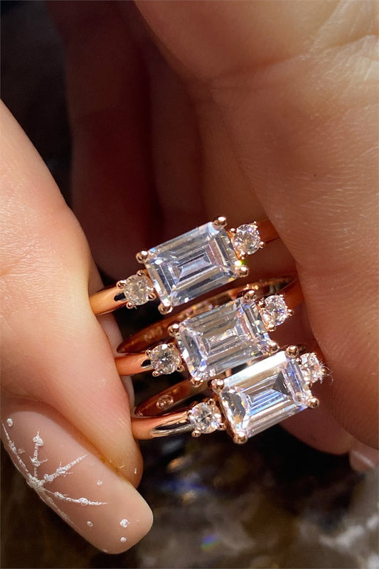 Beyaz Üç Taş İnce Gümüş Yüzük
