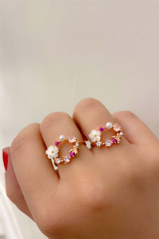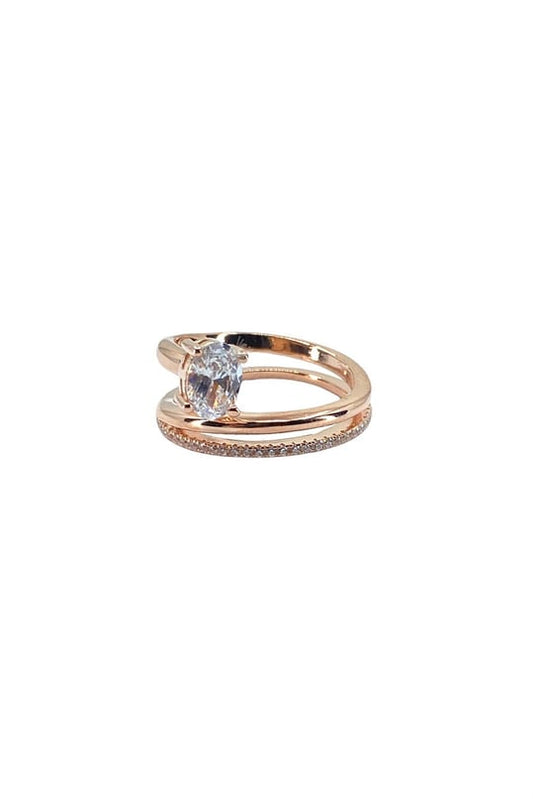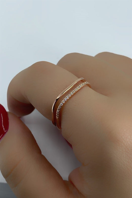 Oval Detay Taşlı Taşsız İki Sıra Yüzük