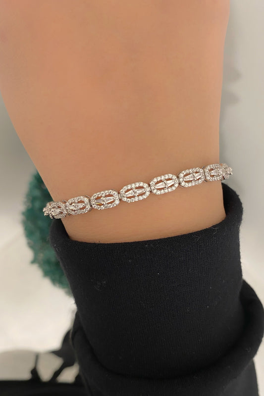 İki Trapez Oval Sıralı Suyolu Gümüş Bileklik