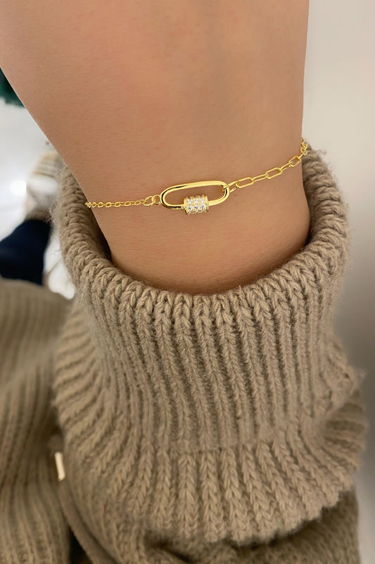 Taş Detay Kanca Geo Zincir Gümüş Bileklik
