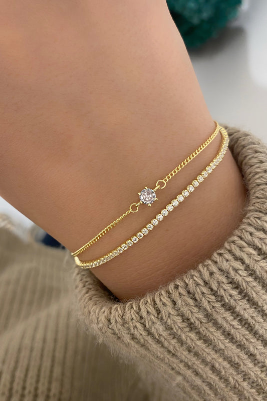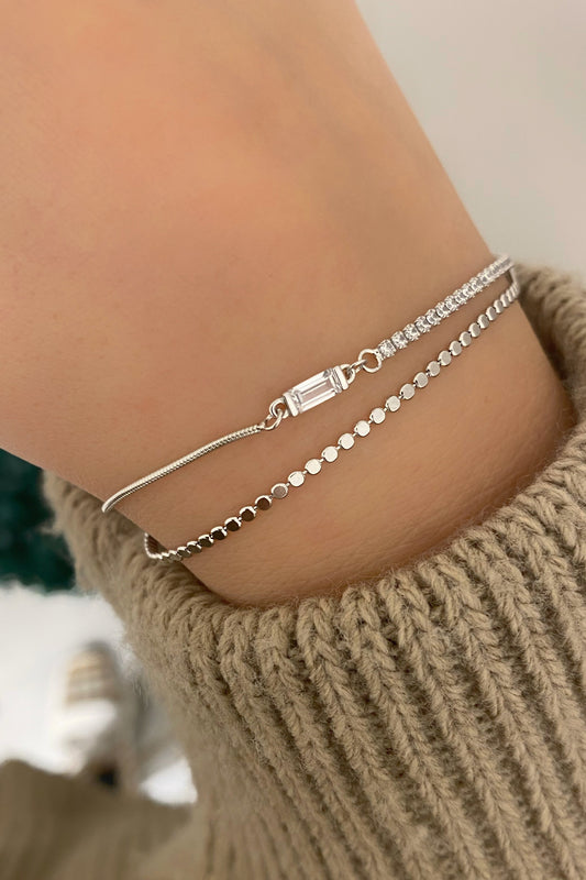 Suyolu Ve Altı Tırnaklı Tektaş Gümüş İkili Bileklik