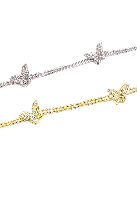 Taşlı Üç Kelebek İki Sıra Top Zincir Gümüş Bileklik