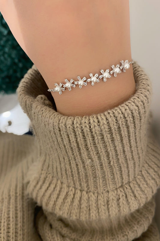 İnci Detay Sıralı Baget Yıldız Gümüş Bileklik