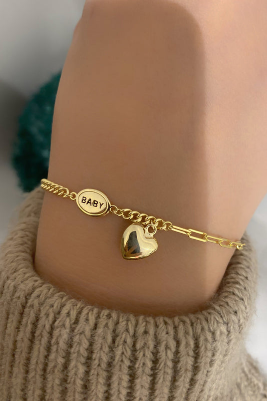 Taşsız Bomby Kalp Ve Geo Zincir Detay Gümüş Bileklik