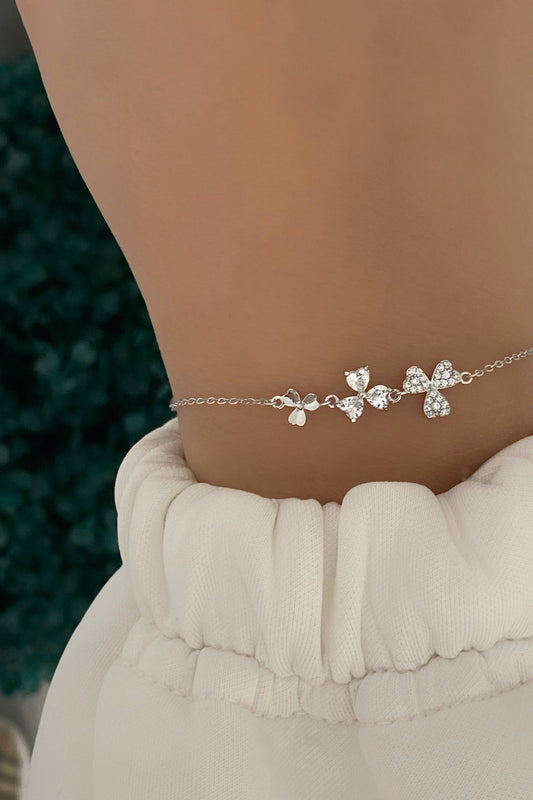 Dört Taş Ve Dört Kalp Yonca Gümüş Bileklik