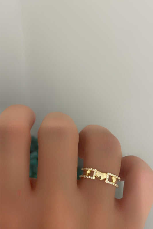 Üç Kalp Ve İki Sıra Taşlı Gümüş Yüzük