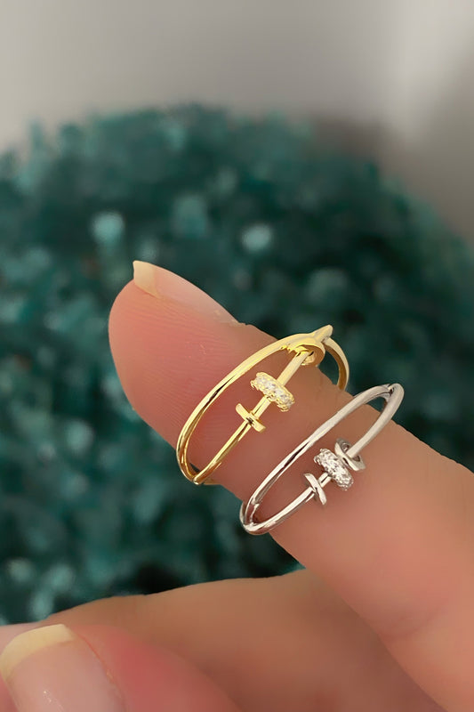 Baget Ve Taşlı Bağcık Gümüş Yüzük