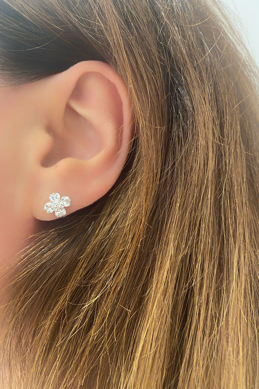 Dört Kalpli Papatya Gümüş Çivili Küpe