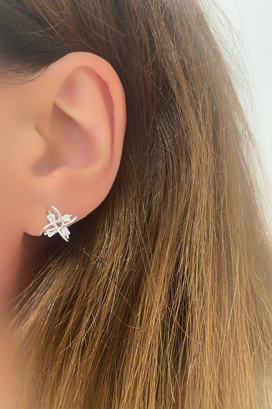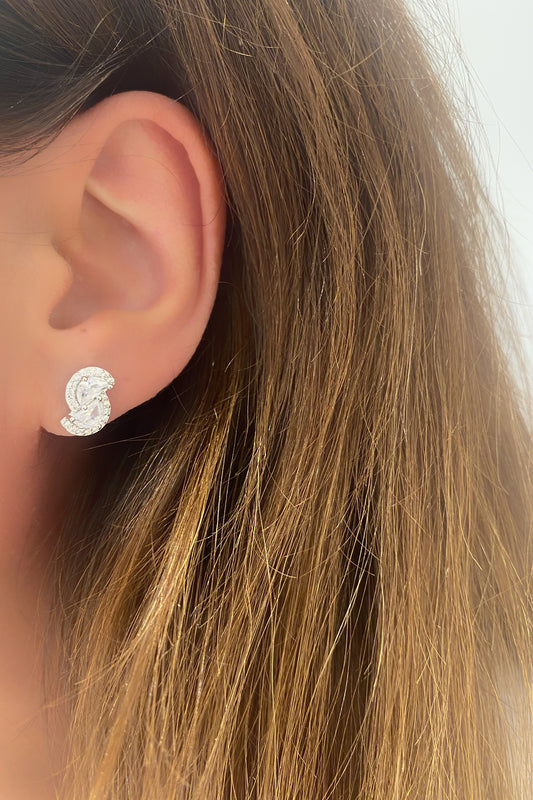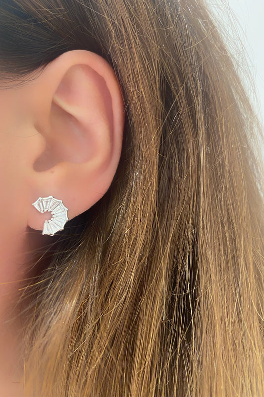 Gömülü Trapez Yarım Çiçek Gümüş Çivili Küpe