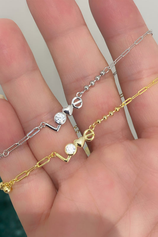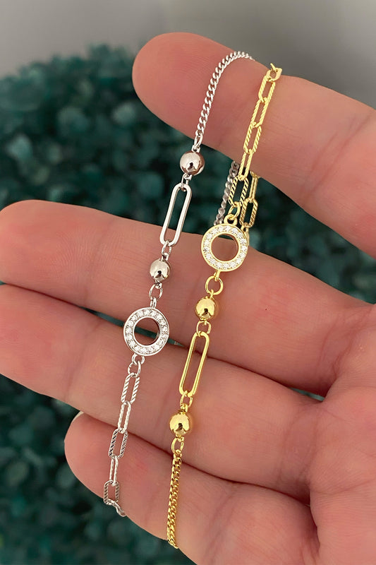 Geo Zincir Çember Ve Dikdörtgen Gümüş Bileklik