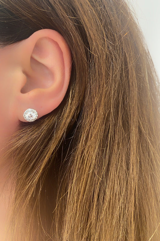 Yuvarlak Tektaş Montür Gümüş Çivili Küpe