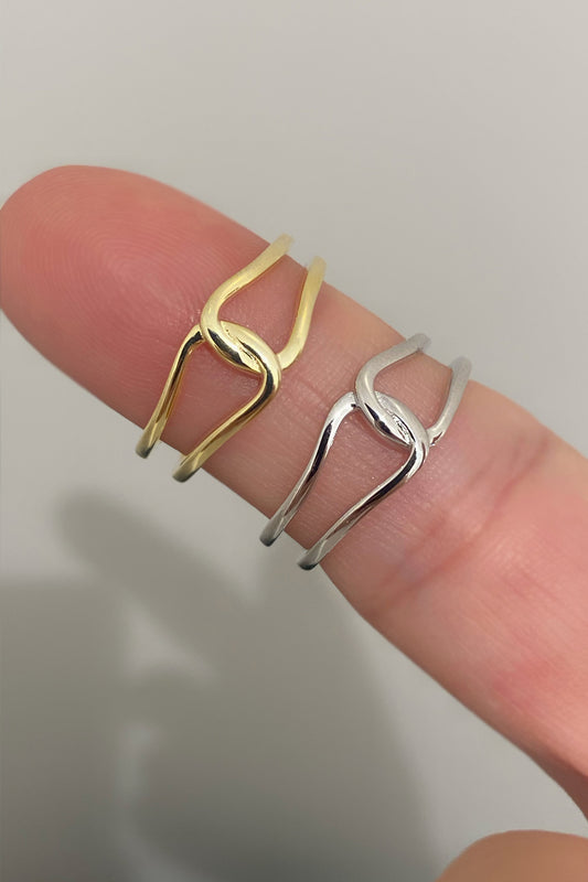 Taşsız Kavuşan Mini Örgü Detay Gümüş Yüzük