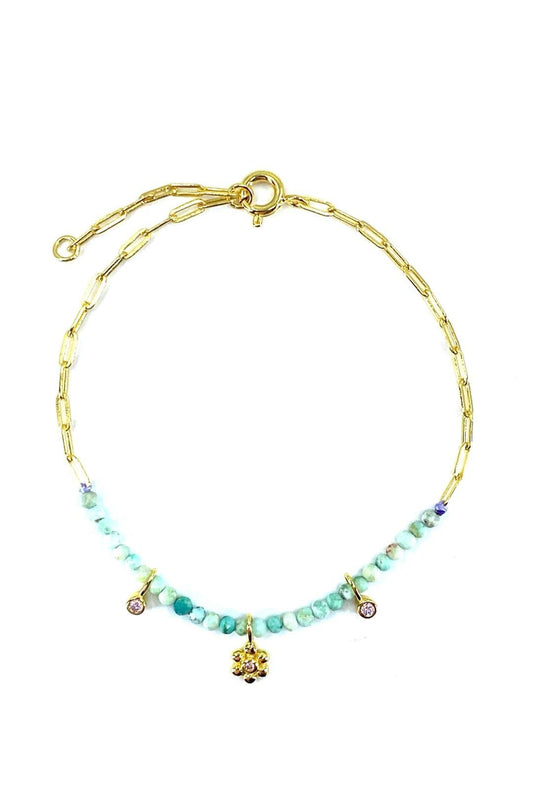 İki Tohum Ve Papatya Detay Turkuaz Gümüş Bileklik