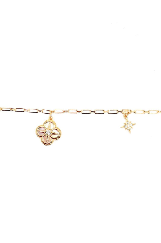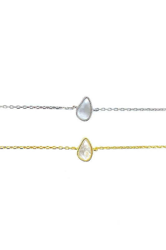 Beyaz Dört Taş Yonca Ve Top Gümüş Bileklik