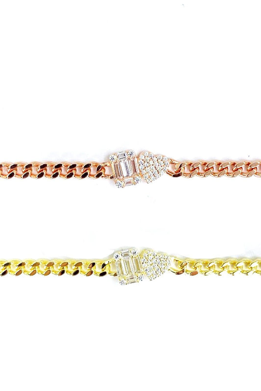 Taşlı Kalp Ve Baget Detay Mini Gurmet Gümüş Bileklik