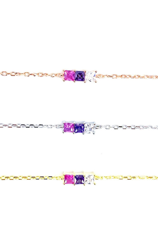 Pinky Üç Kare Taş Gümüş Bileklik