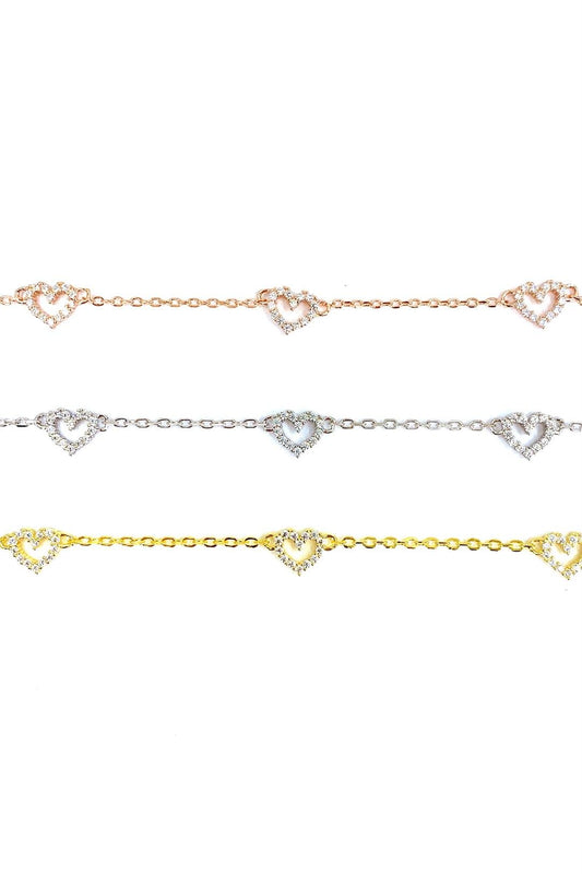 İçi Boş Taşlı Kalp Gümüş Bileklik