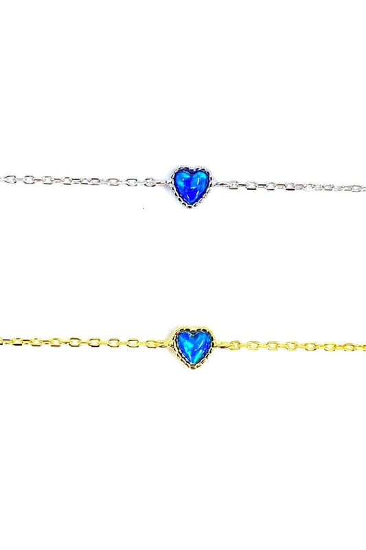 Mini Mavi Opal Kalp Gümüş Bileklik