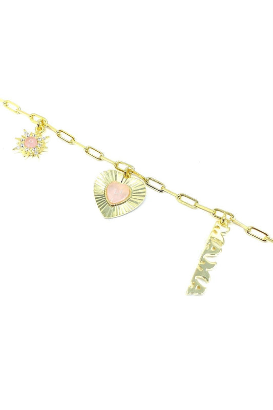Soft Pembe Kalp Çizgili Geo Gümüş Bileklik