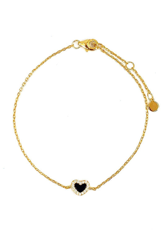Siyah Sedef Taşlı Kalp Gümüş Zincir Bileklik