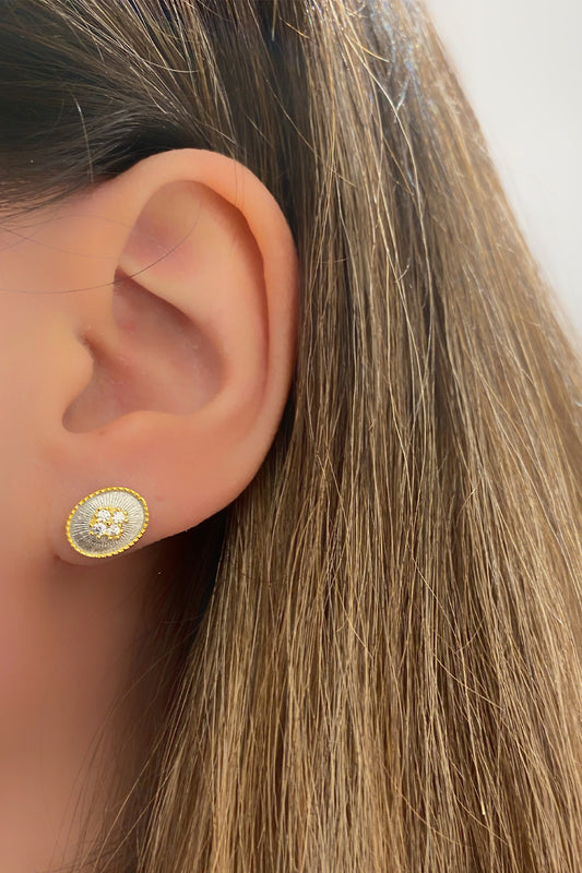 Mix Çiçek Detay Oval Gümüş Çivili Küpe