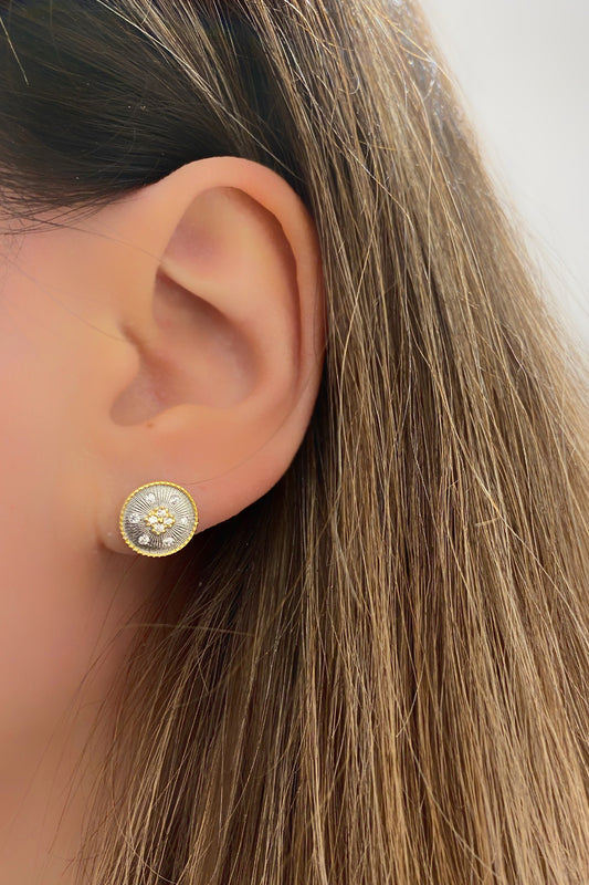 Mix Çiçek Detay Yuvarlak Gümüş Çivili Küpe