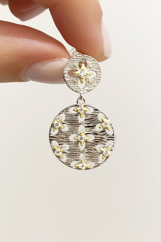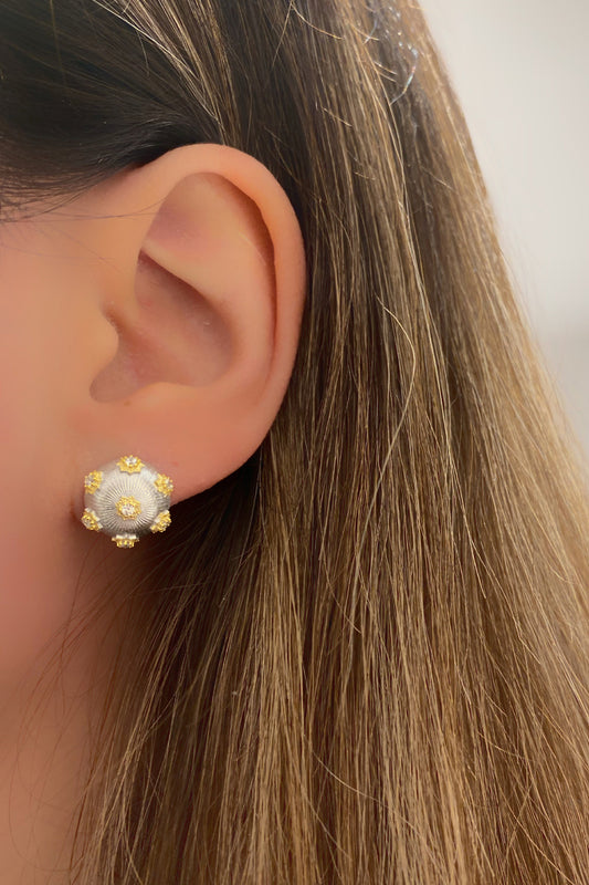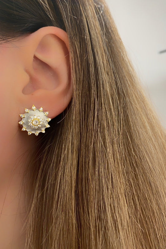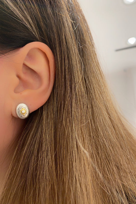 Mix Yuvarlak Güneş Gümüş Çivili Küpe