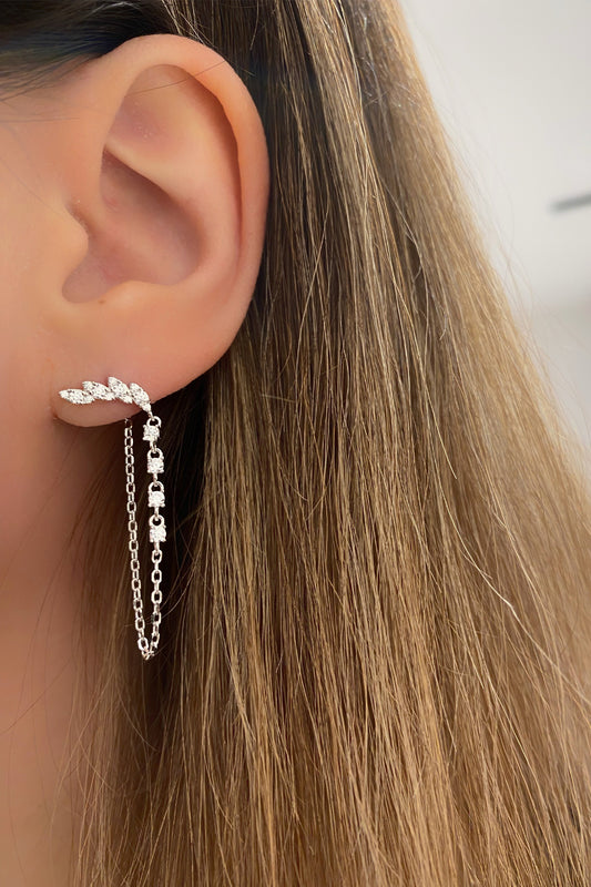 Mini Üç Taş Mix Yay Gümüş Zincir Klips Küpe