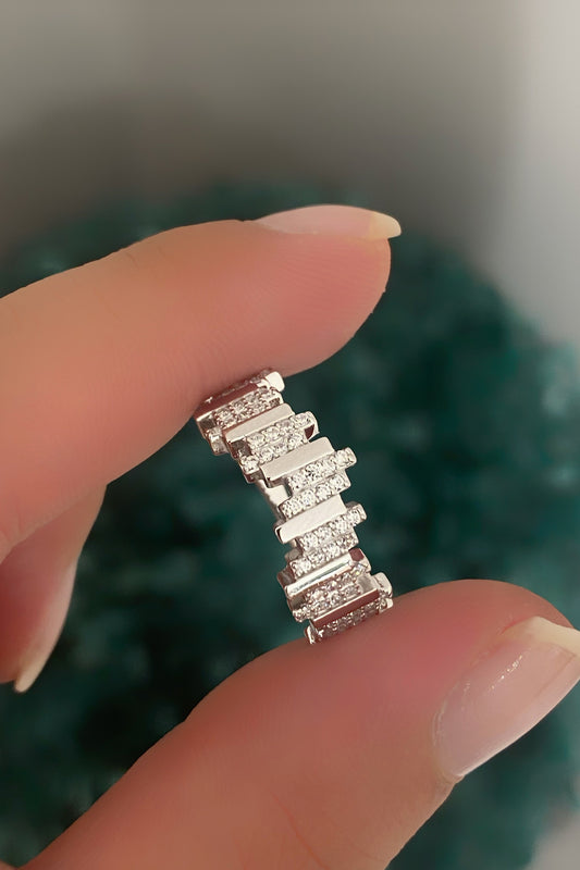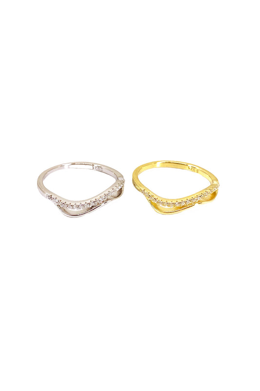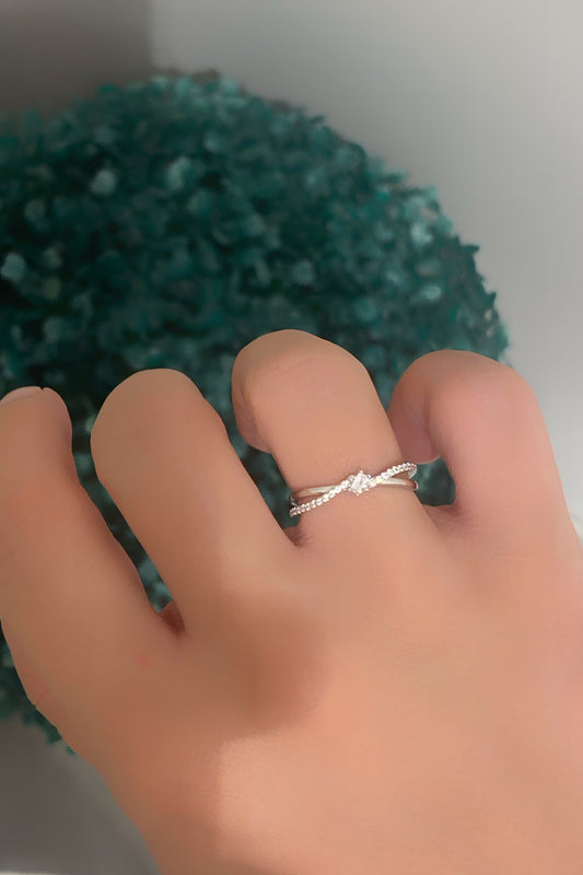 Mini Baget Taşlı Çapraz İnce Gümüş Yüzük