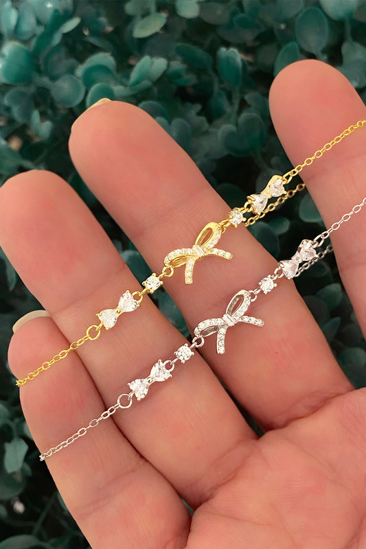 Taşlı Minimal Kurdele Gümüş Bileklik